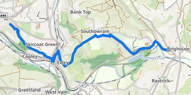 This route takes in cobbles, woods, the canal and the route over the top of Southowram to catch views looking back over Halifax. There is one steep hill from the canal bottom, via Exley Bank and Siddal towards School Lane in Southowram then you come back down the other side into Cromwell Bottom and then re-join the canal towards Brighouse.