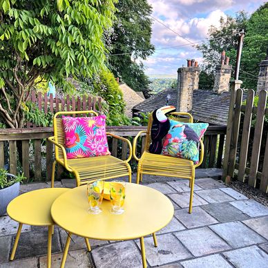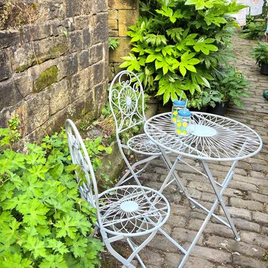 Our cottage garden can make a nice place to sit and watch the work go by. We‘ve added a bistro set on the cobbles at the back - cute as can be for a morning coffee or evening Prosecco.
